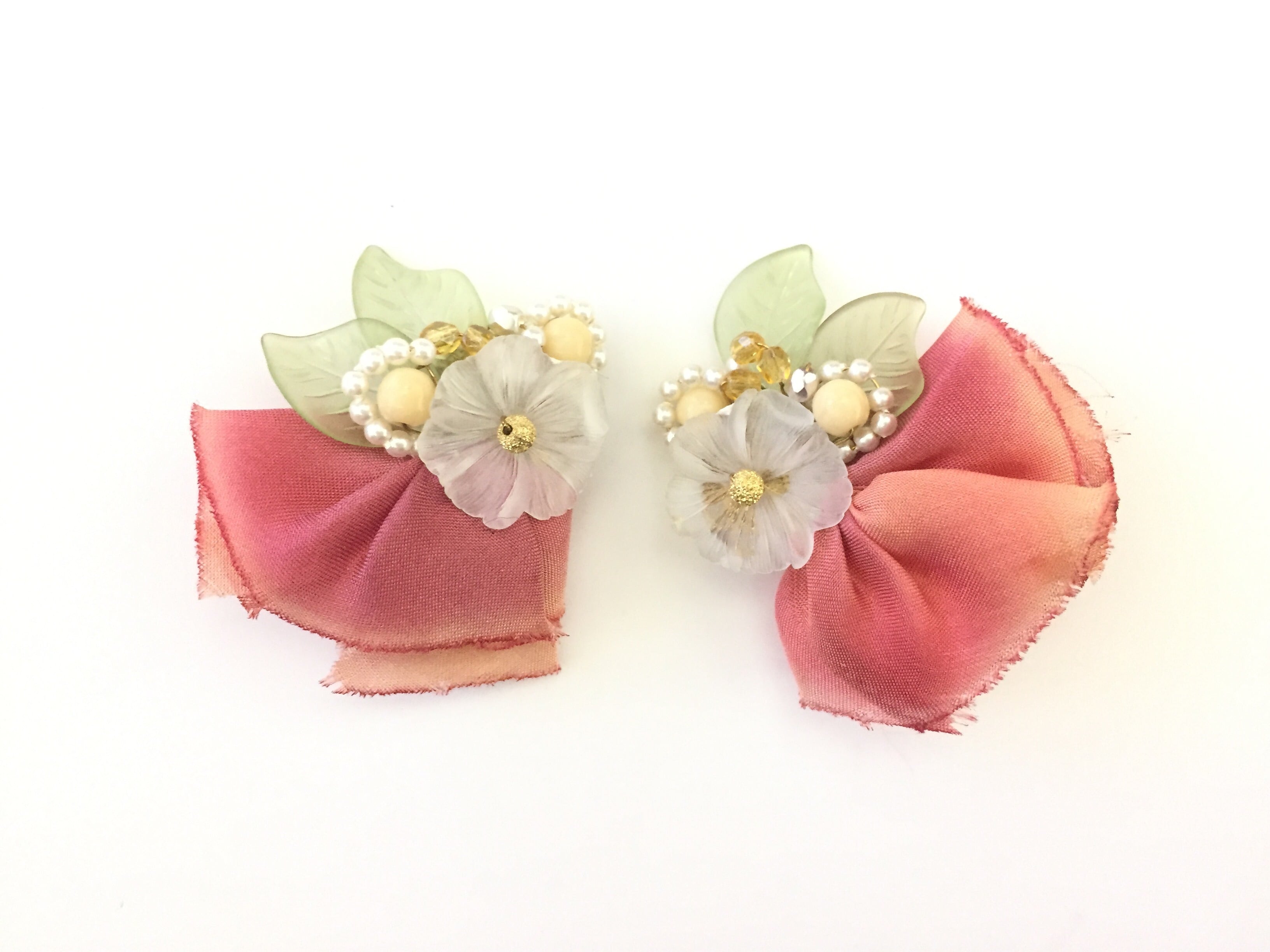 シルクのリボンを使ったお花イヤリングです。